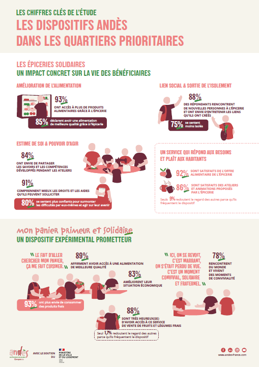 Ces attentes font écho aux actions déjà déployées par Andès dans les QPV. Avec plus de 630 structures en France, dont 120 implantées en quartiers prioritaires, le réseau des épiceries solidaires agit au plus près des habitants. Le programme Mon Panier Primeur et Solidaire, qui propose des fruits et légumes frais à 1 €/kg aux résidents de logements sociaux partenaires, illustre cet engagement.